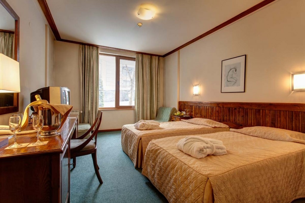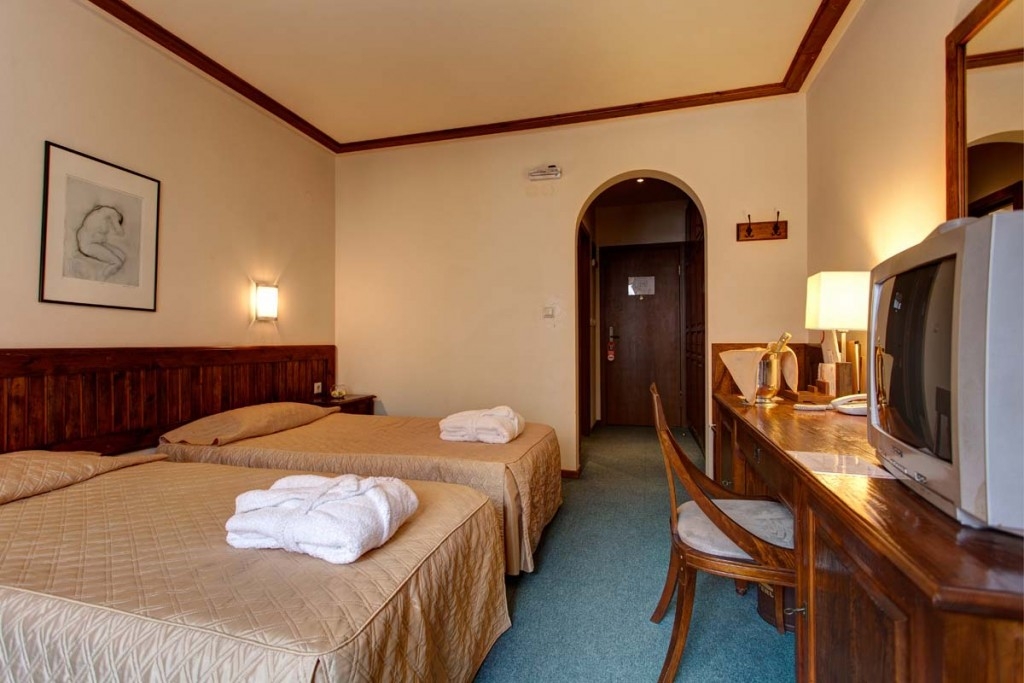 - Dvokrevetna standard soba za 2-3 osobe (2+1): kvadratura sobe je oko 18 m2, sadrži dva odvojena ležaja, fotelju na razvlačenje, SAT TV, sef, internet,kupatilo sa tušem, fenom za kosu, bade mantil i papuče. Sobe su sa ili bez balkona.