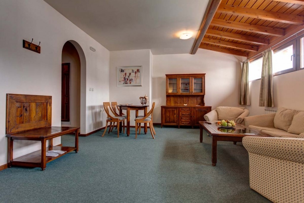 - Junior apartmani za 2-4 osobe (2+2): apartmani su komforni (oko 44 m2) i sadrže francuski ili dva odvojena ležaja, sofu na rasklapanje, SAT TV, sef, internet, kupatilo sa tušem, fenom za kosu, bade matil i papuče. Većina apartmana je sa balkonom. Namenjen smeštaju porodica sa dvoje dece, a maksimalno 3 odrasle osobe i jednog deteta.