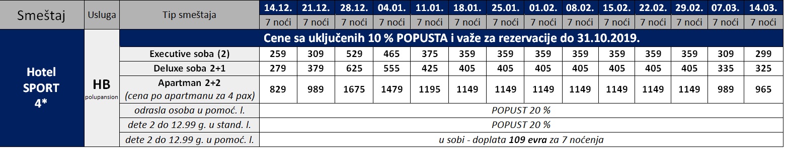 Cene su izražene u evrima po osobi na bazi POLUPANSIONA